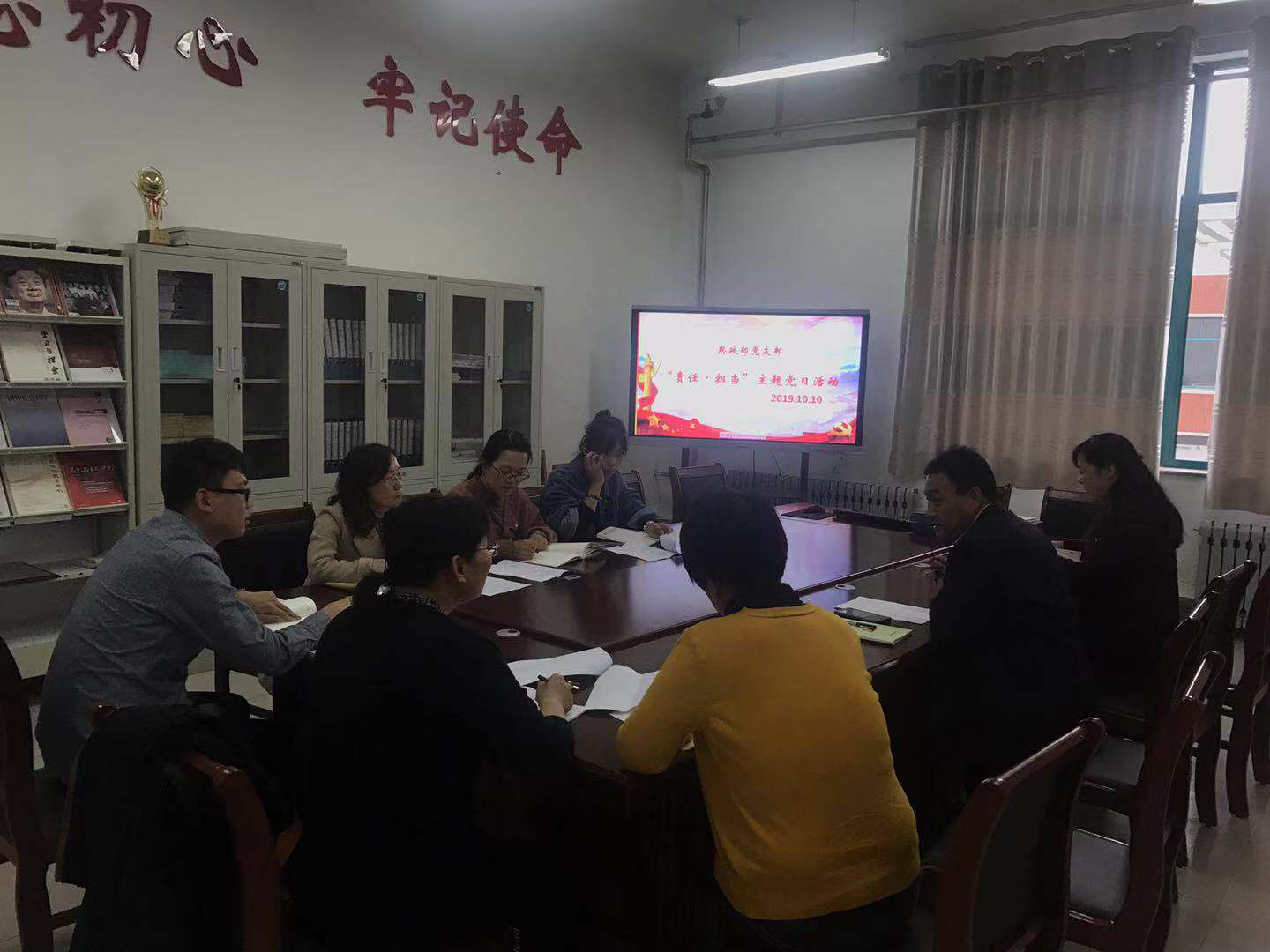 为认真学习习近平新时代中国特色社会主义思想,扎实开展“不忘初心、牢记使命”主题教育,2019年10月10日上午,思政部党支部结合实际情况,开展了“责任·担当”主题党日活动。