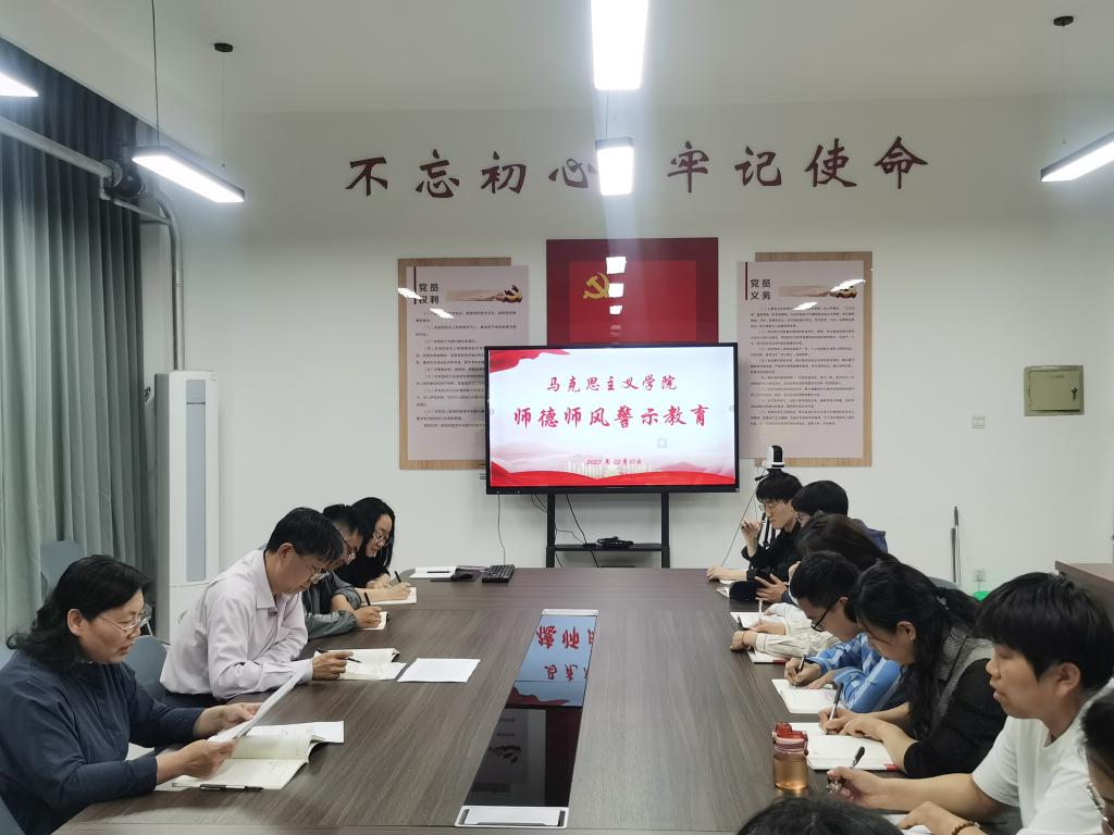王东同志首先向全体教师通报了教育部公开曝光的第十一批、第十二批违反教师职业行为十项准则典型案例,并结合案例分析教师工作生活中违反师德师风的风险因素,警示教师在日常教学、生活中要树牢以德立身、以德立学、以德施教的理念,把师德师风建设作为第一标准。随后,全体教师认真对照师德负面清单所列禁止和限制行为进行自查自纠,并签订“树师德 正师风”承诺书。