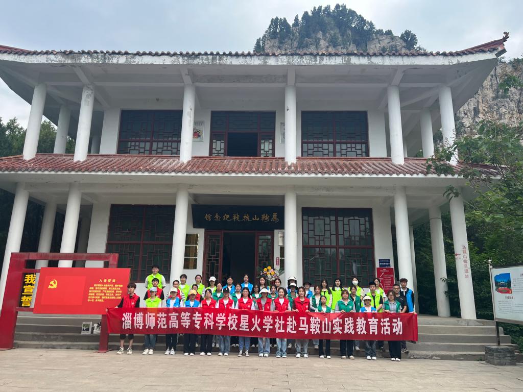 马鞍山位于淄川区太河镇的淄河片区,因其形似马鞍而得名,是集历史文化、革命传统教育和自然风光于一体的省级爱国主义教育基地。随着讲解员“一门忠烈”的故事的讲述,同学们被马鞍山战士们的故事震撼了。“巍巍马鞍山,泣血埋忠骨,滔滔淄河水,洒泪祭英魂”,一行文字让大家仿佛回到了枪林弹雨的战场之上,真切感受到革命先烈敢于牺牲的大无畏精神。