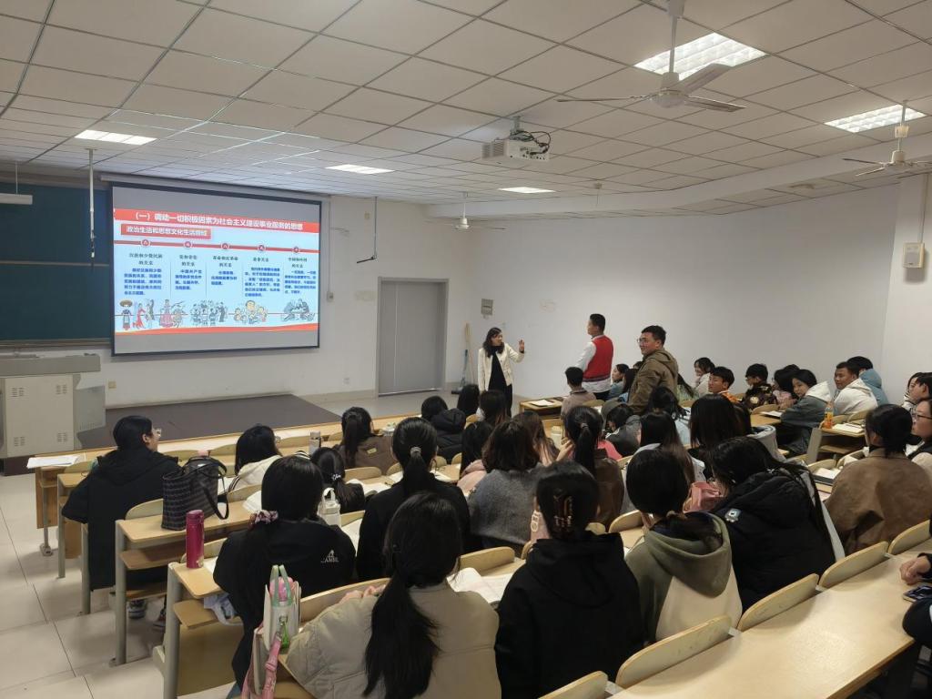 秋日午后,阳光和煦,校园中的绿松、金银杏与红枫交织出绚烂的景致。而思政课堂上,青海师生们的到来,更为我们绘就了一幅民族团结进步的生动画卷。正如习近平总书记所指出的,56个民族要像石榴籽一样紧紧抱在一起。这次交流正是这一理念的生动体现,大家共同绘出中华民族共同体的同心圆,汇聚起筑梦未来的强大合力,为中华民族伟大复兴贡献青春力量!