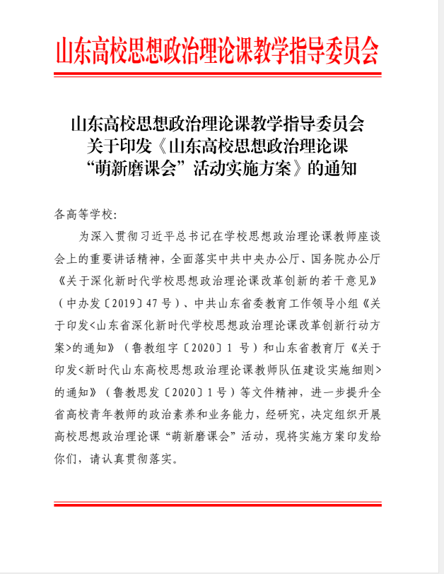 上一条:转发|关于印发《山东高校思想政治理论课“萌新磨课会”2024年活动实施方案》的通知 下一条:中共中央办公厅印发 《关于加强新时代伟德国际victor1946建设的意见》