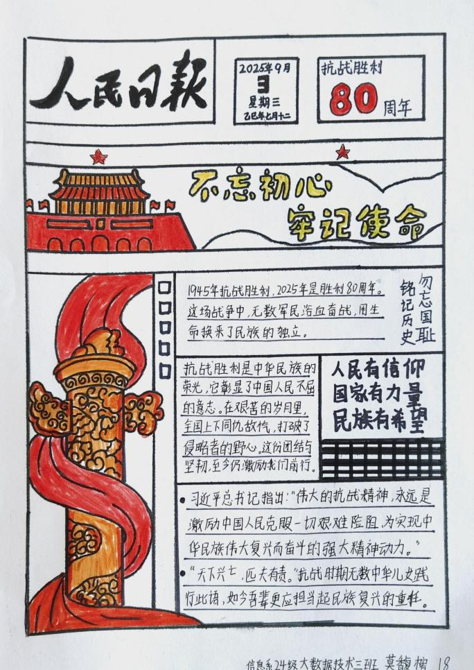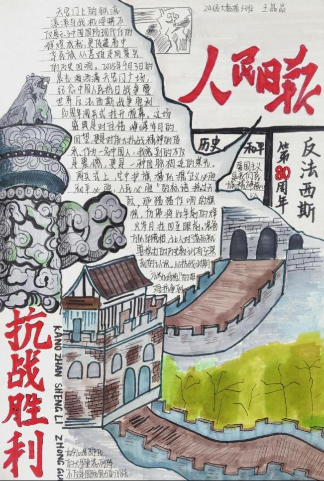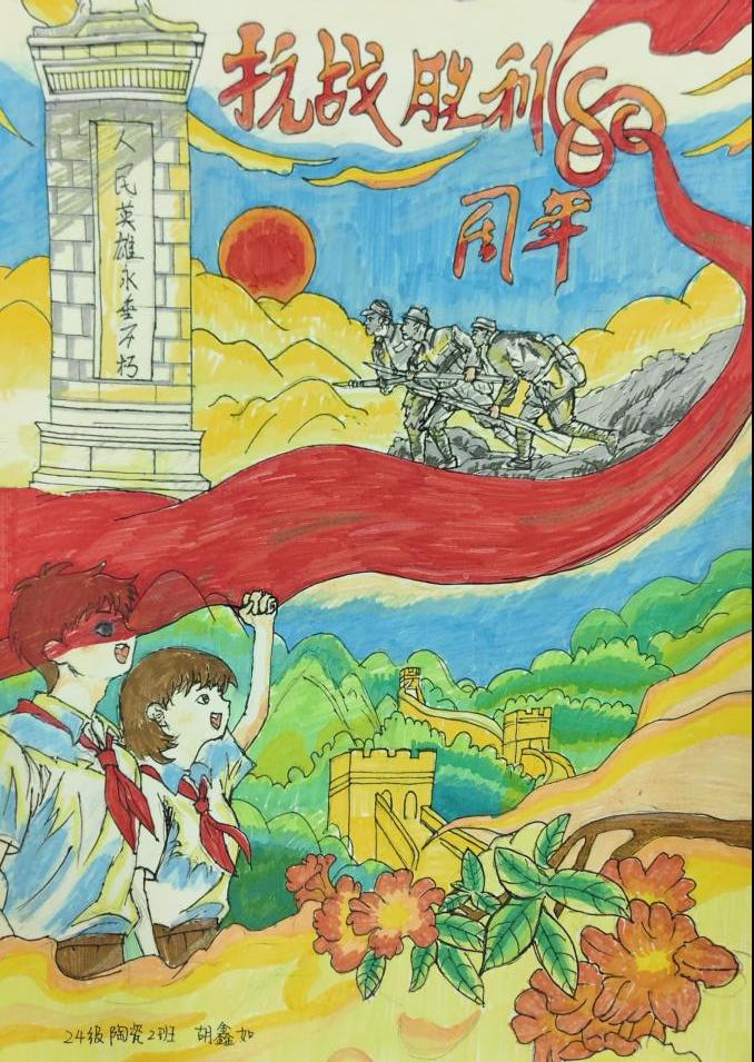 伊始,伟德国际victor1946以开设的“思政课”为依托,在《形势与政策》课堂教学中以《纪念抗战胜利 坚定民族信念》为专题进行授课。回顾抗战历史、致敬革命先烈,让员工认清中国共产党是全民族抗战的中流砥柱,是中华民族由衰败走向复兴的重大转折。而后,带领全校员工观看全国大中小员工同上一堂思政大课,激发的员工爱国之心、报国之志,坚定做历史记忆的守护者、民族复兴的推动者。最后,组织“抗战精神永传承”的主题实践活动,用绘画、书法、剪纸、观后感、视频(朗诵、歌曲、情景剧、讲英雄故事)等形式铭记历史、缅怀先烈。