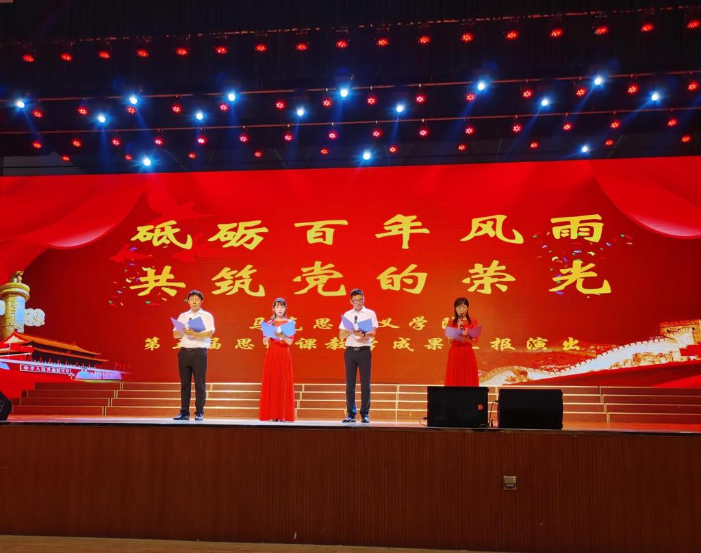 本次活动围绕向中国共产党百年华诞献礼的主题,各院系同学们结合思政课教学实践内容,通过朗诵、舞蹈、音乐、舞台剧、合唱等表演形式,从不同角度呈现中国共产党的革命精神、建设精神、改革创新精神和新时代精神。