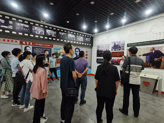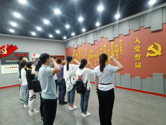 在讲解员的引领下,老师们依次参观了党章发展历程展示区、党章内容解读区、榜样人物学习区、互动交流体验区和党章课堂,听讲解员介绍了俄国十月革命、火种传播、星星之火等版块内容,了解了不同阶段党章的时代背景、具体内容、社会意义,集体观看了微电影《廖俊波》,在入党誓词墙前,重温了入党誓词,体验了一堂生动的情景党课。