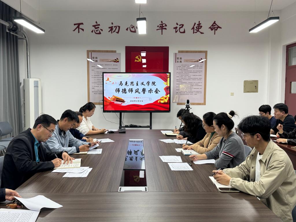 会上,首先开展师德师风警示教育。全体教师集中学习《习近平总书记关于师德师风的重要论述摘编》《师德优秀典型事迹》,共同观看《遵师德师风,做“四有教师”》专题教育视频。然后,周政书记结合《新时代高校教师职业行为十项准则》逐条解读,帮助教师精准把握师德规范的具体要求,从制度层面夯实“为党育人、为国育才”的思想根基。通过正面引领与反面警示相结合的方式,进一步增强了对师德内涵的理解与把握,让教师们深刻认识到师德的重要性。