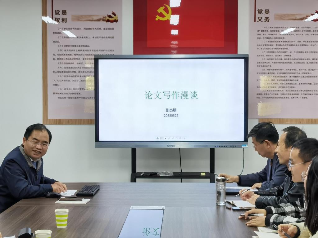 会上,张良朋教授以“论文写作漫谈”为题,介绍了学术论文写作的经验和感悟。他以李吉林老师的“情境教育研究”为例切入主题,以典型论文为例,从论文写作的价值、论文的形式和实质结构三个方面进行分享,并结合自己的论文写作体会、论文投稿经历,回答了马院教师的提问。