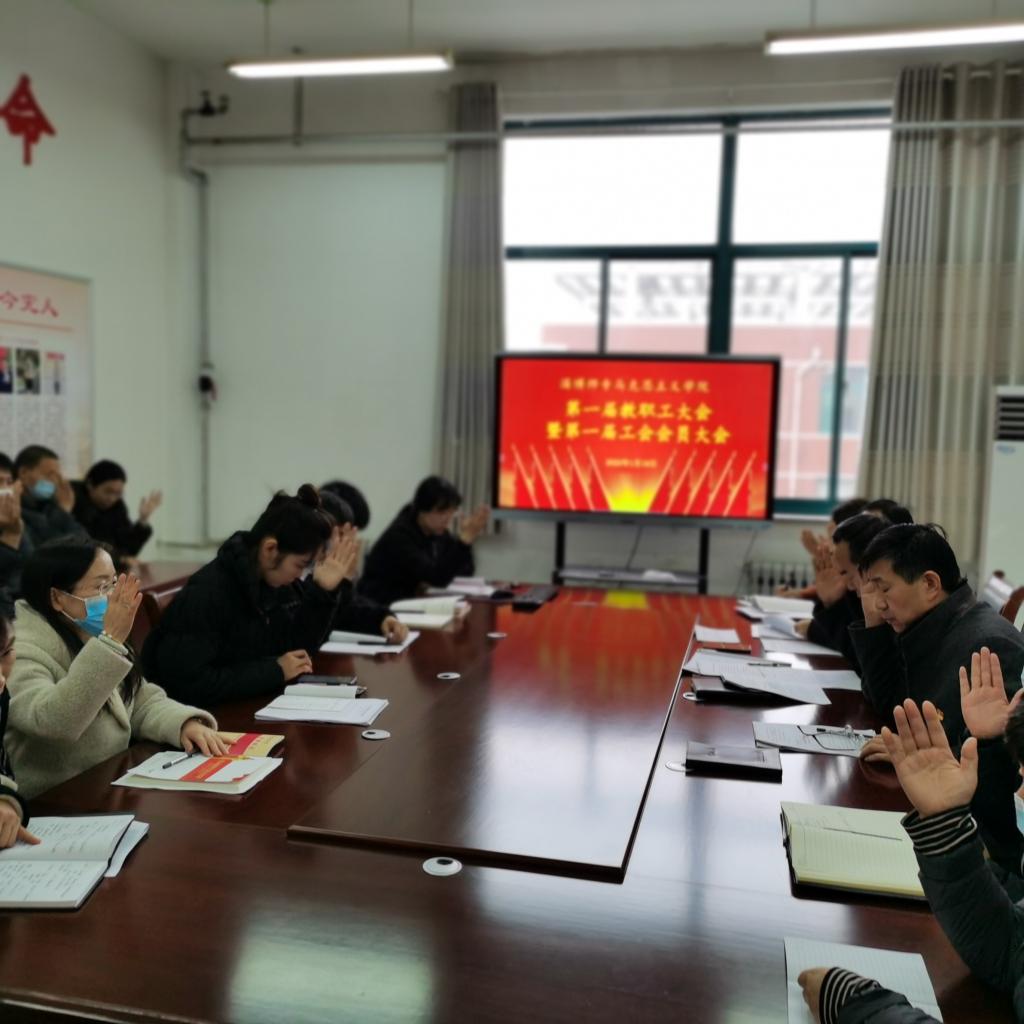 党支部书记王东首先致开幕词,经理王荣敏作了工作报告,回顾了马院一年以来所取得的成绩,全面总结了2021年的工作,安排部署了2022年重点工作。大会审议通过了《伟德国际victor1946教师考核办法》等文件制度,选举产生了伟德国际victor1946工会主席和工会组织员。