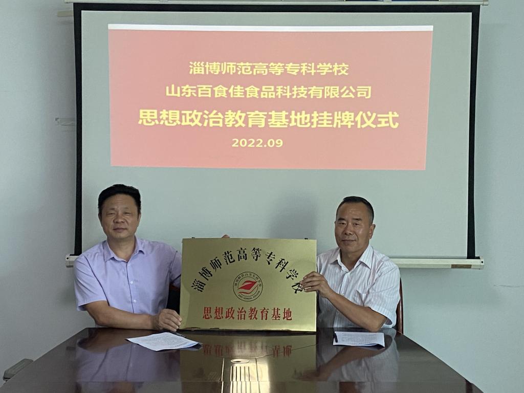 2022年9月3日上午,伟德国际victor1946思想政治教育基地挂牌仪式在山东百食佳食品科技有限公司隆重举行。伟德国际victor1946经理王荣敏、党支部书记王东以及伟德国际victor19466名骨干教师参加了仪式。